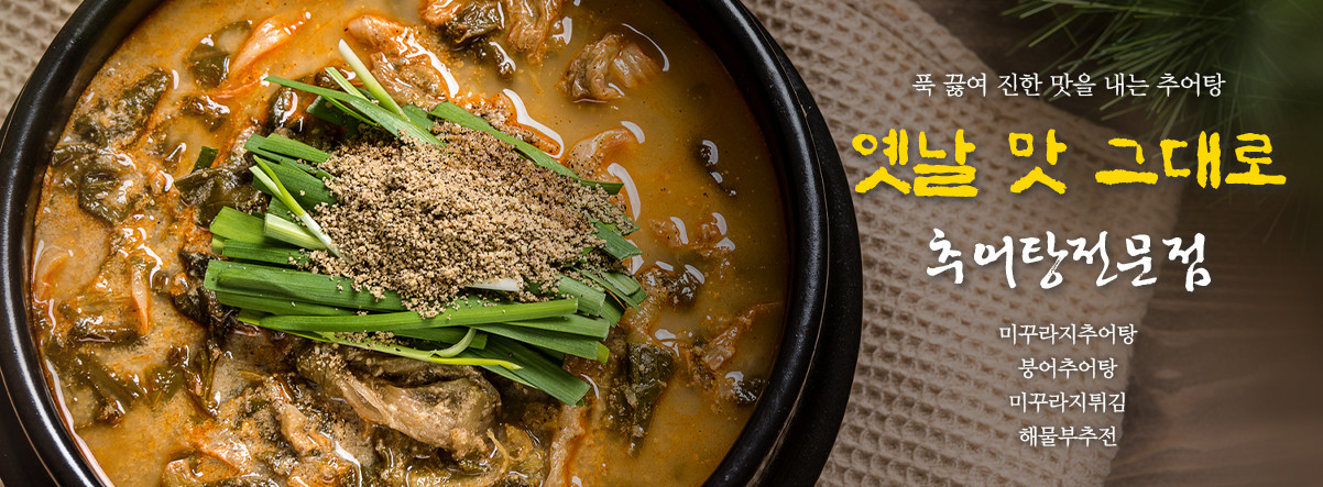 최상의 맛을 제공해드리고 있습니다. 엄선된 식재료로 정성을 다해 조리하여 최상의 맛을 제공해드리고 있습니다. 성원에 감사드리며 한결같은 맛과 서비스로 보답하겠습니다. 성원에 감사드리며 한결같은 맛과 서비스로 보답하겠습니다. ![]() 메뉴안내 미꾸라지추어탕 붕어추어탕 미꾸라지튀김 해물부추전 고객과의 약속 전화 문의 및 예약 환영. 단체석 완비, 가족모임, 회식. 고객만족, 서비스 만족. 전화 상담 및 문의 환영합니다.