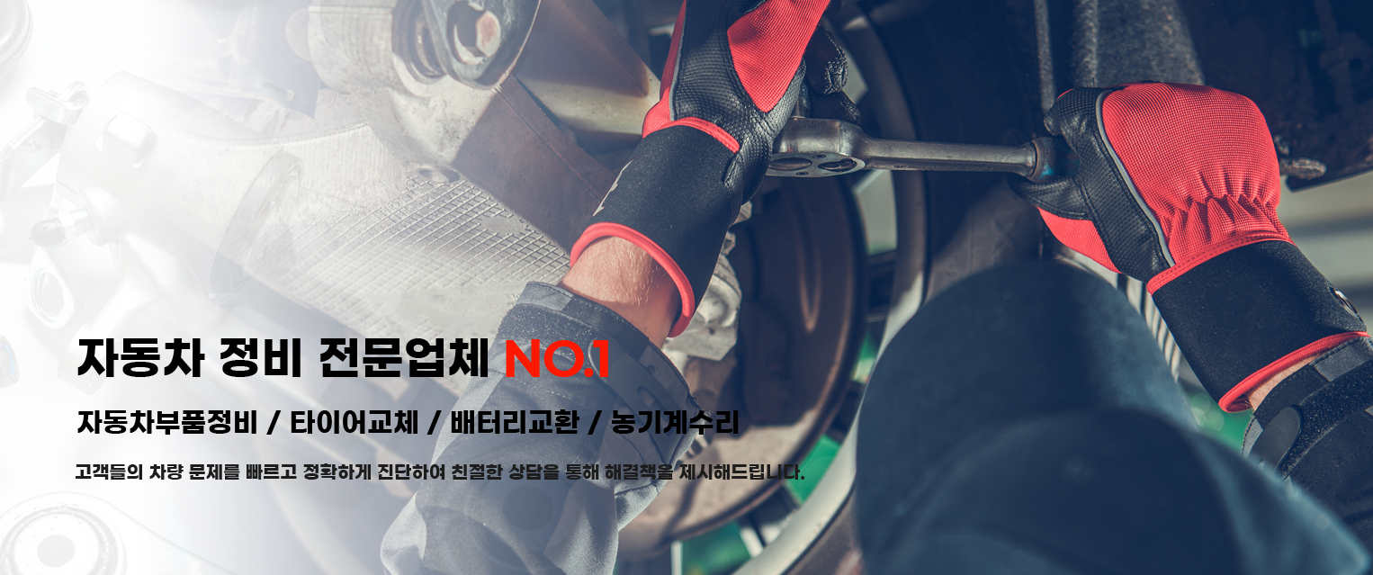 고객만족을 위해 늘 최선을 다하겠습니다. 친절한 상담! 최고의 서비스! 친절한 상담! 최고의 서비스! ![]() 영업안내 · 공업사 · 자동차정비 · 자동차수리 · 타이어교체 · 배터리교환 · 농기계수리 · 경정비 고객과의 약속 01 고객을 최우선으로 생각합니다. 02 믿음과 신용을 지키기위해 노력하겠습니다. 03 작은 일에도 정성을 다하여 성심껏 모시겠습니다. 04 전화 상담 및 문의 환영합니다.