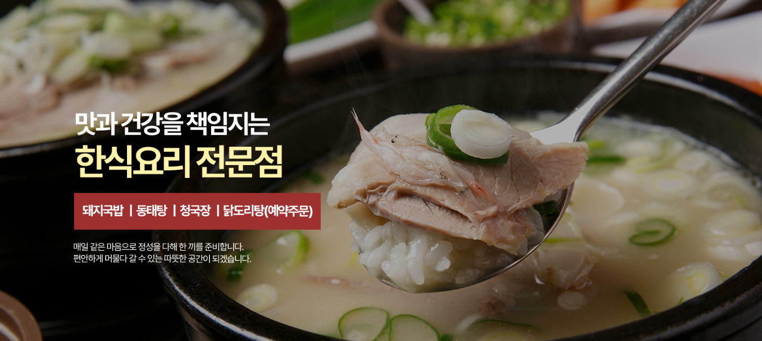 • 정성 어린 손맛과 편안한 분위기로 보답하겠습니다. 정성 어린 손맛과 편안한 분위기로 보답하겠습니다.