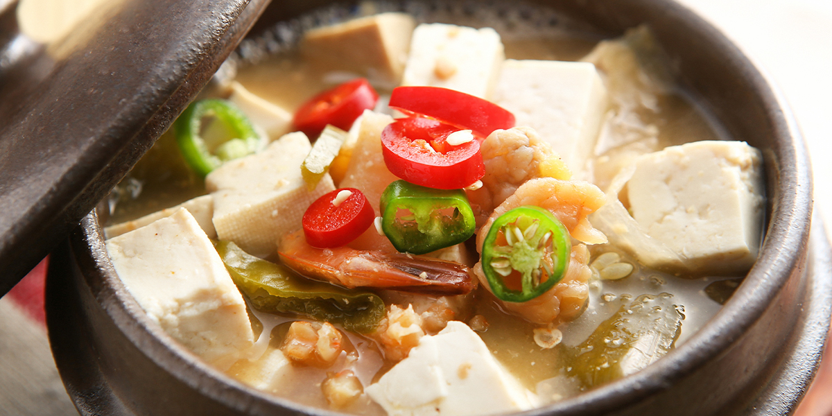 구수한 된장과 채소가 어우러진 전통 한식 국물 요리, 속까지 따뜻하게 만드는 인기 정식.