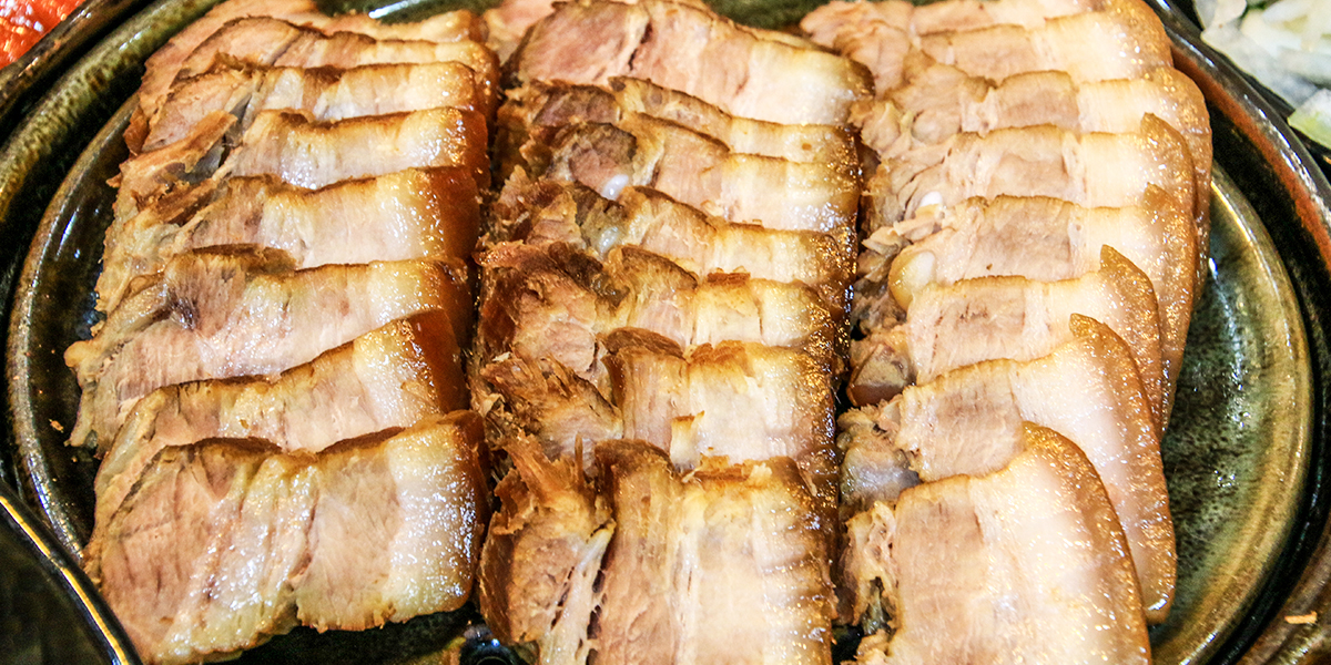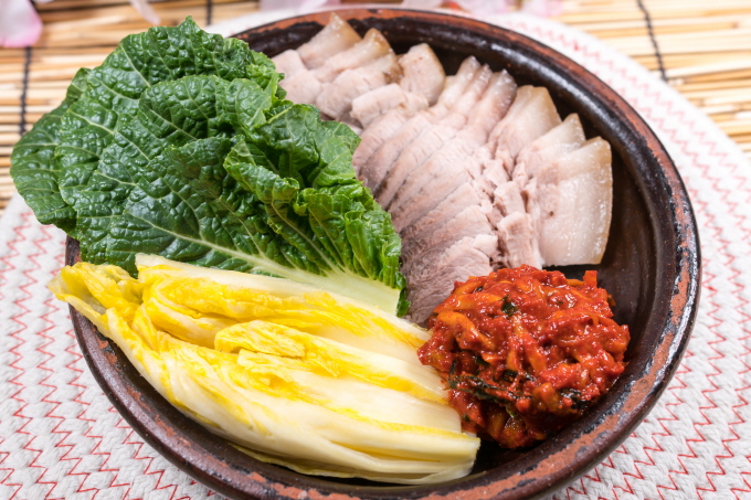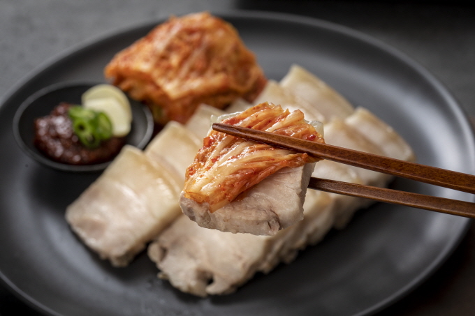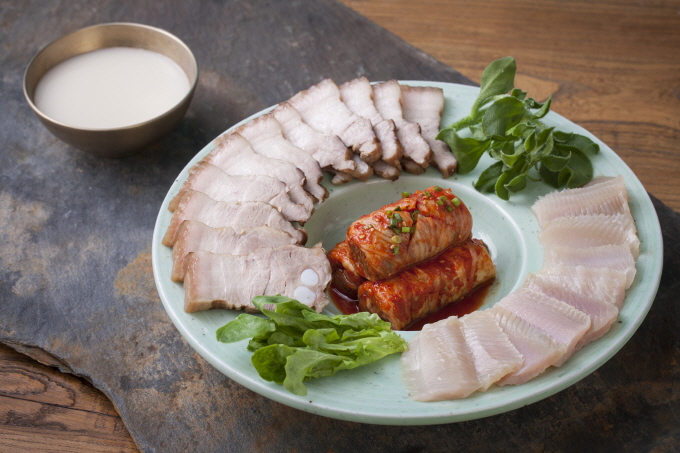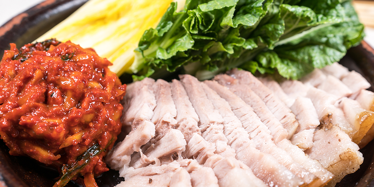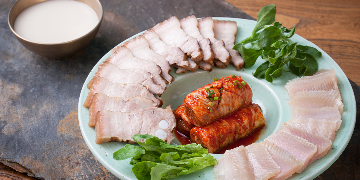 부드럽게 삶아낸 돼지고기와 신선한 채소의 조화가 돋보이는 대표 메뉴