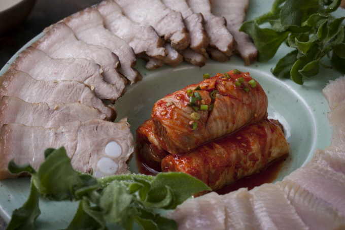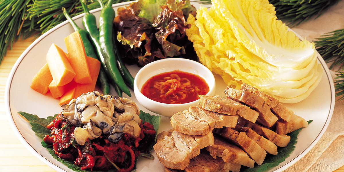 바다의 향이 살아있는 굴을 곁들여 풍성하게 즐기는 보쌈 스타일