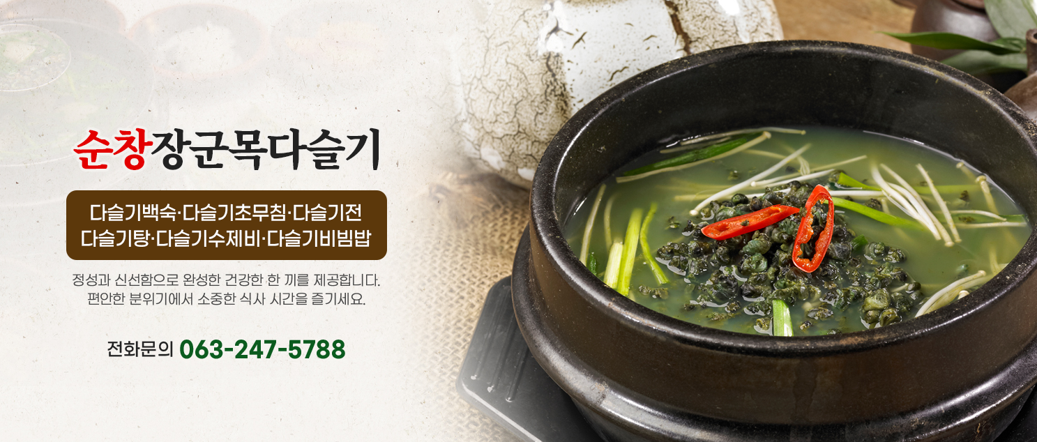 • 순창장군목다슬기 순창장군목다슬기 자연의 맛을 담은 한식 공간 자연의 맛을 담은 한식 공간