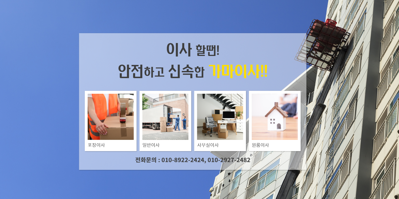 • 가장 많은 분들이 선호하는 포장이사 서비스는 경제적인 비용의 실속 이사서비스로 포장에서 정리정돈까지 토탈서비스를 기본으로 제공합니다.