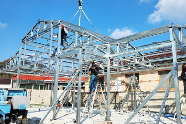 · 건축 철구조물, 경량 철골공사 · 공장, 창고, 신축, 증축공사, 보수공사 · H빔 철골공사, 지붕 교체공사 조립식건축