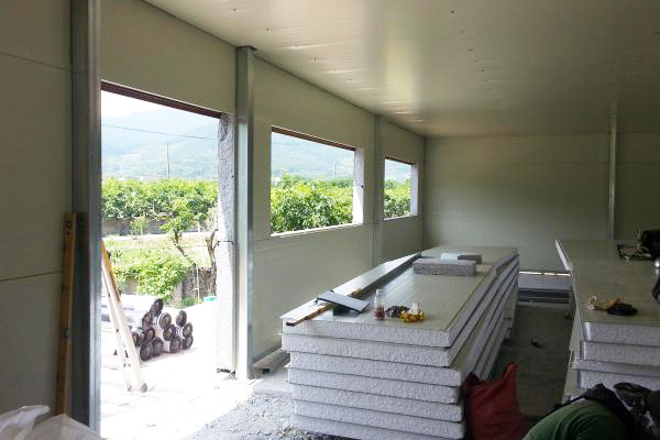 · 샌드위치 판넬(EPS), 그라스울 판넬, 우레탄 판넬, 싸이딩 판넬, 폼판넬 · 엠보싸이딩 판넬, 각종 무의 칼라 판넬, PE-폼, 폼강판, 홀강판, PC 조립식건축