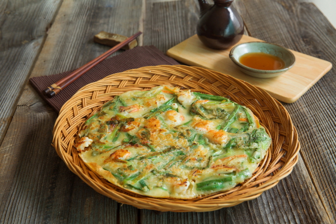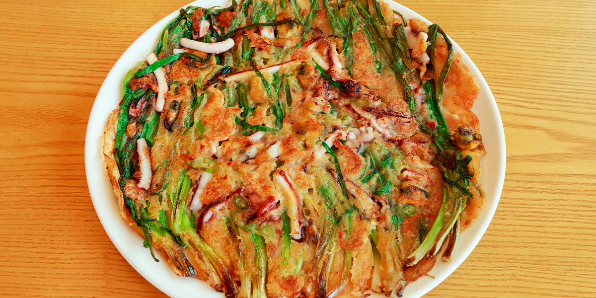 신선한 해물과 파를 듬뿍 올려 바삭하게 구워낸 인기 안주 겸 식사메뉴입니다.
