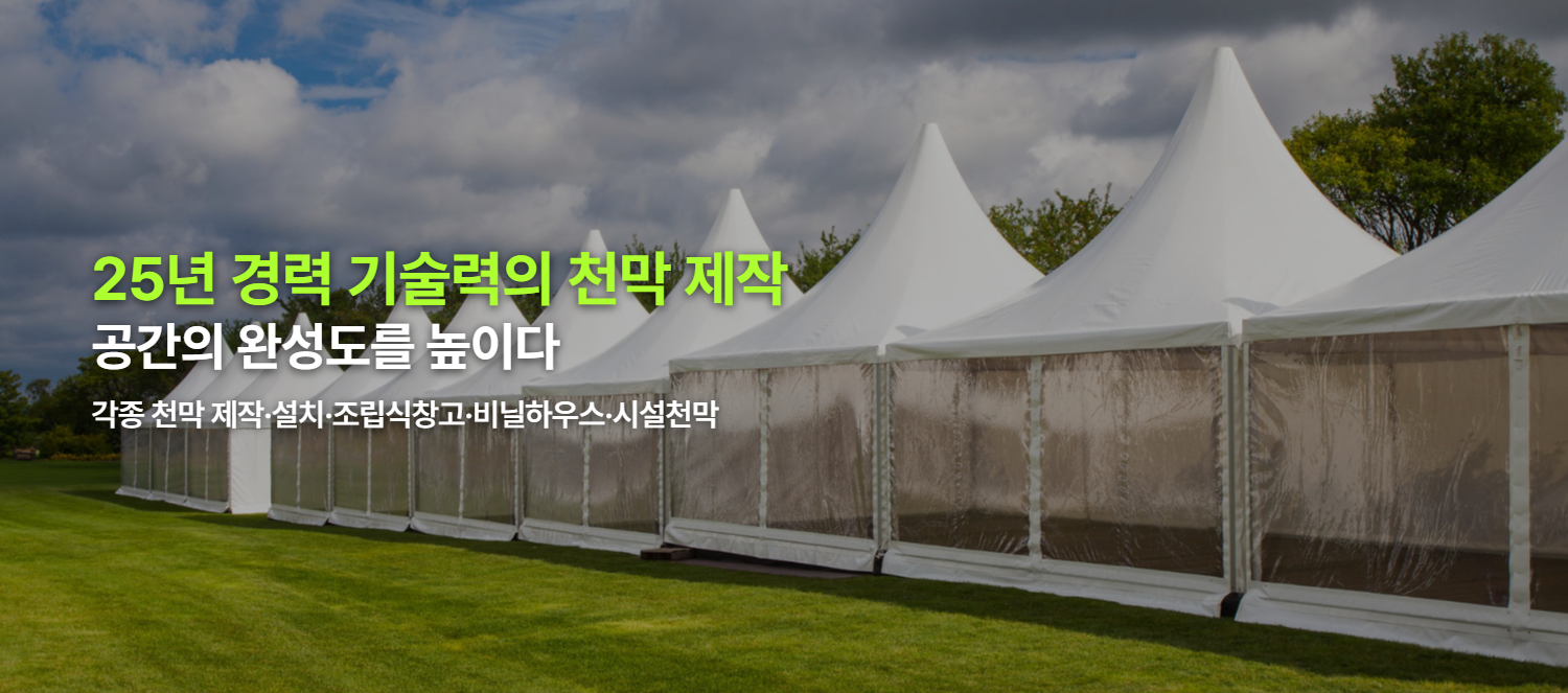 고객의 공간과 용도에 최적화한 천막 설계로 내구성과 완성도를 함께 잡았습니다. 설치 후에도 철저한 관리로 오래 믿고 쓰실 수 있도록 책임지겠습니다.