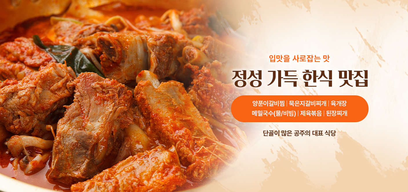 푸짐한 양푼에 담아내는 깊고 진한 갈비찜으로 부드러운 갈비와 감칠맛 나는 양념이 어우러진 대표 메뉴입니다.
