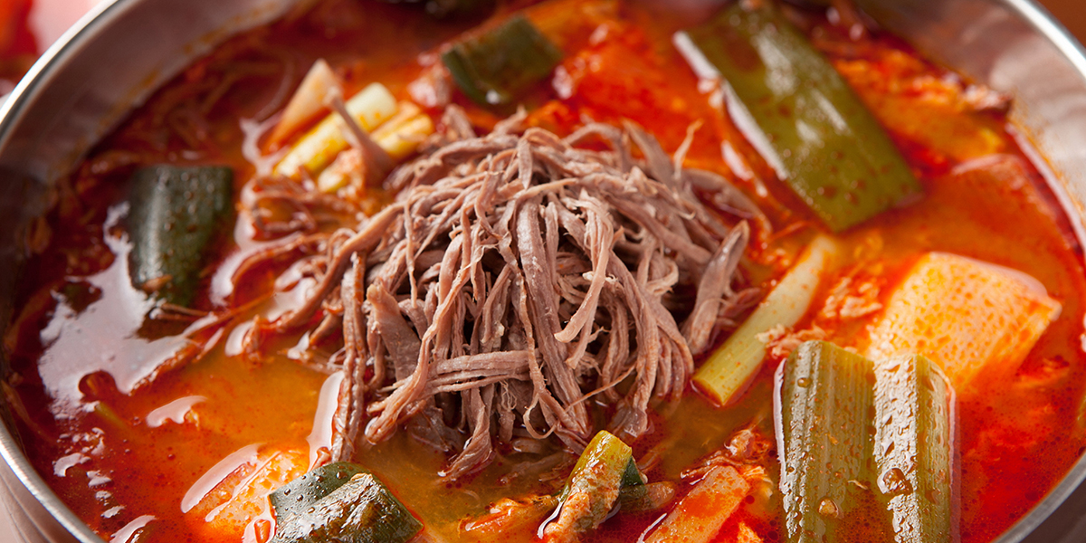 얼큰하고 진한 국물에 든든한 재료를 더한 전통 육개장은 한 그릇만으로도 속이 든든해지는 깊은 맛입니다.