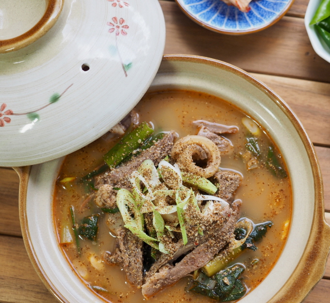 칼칼하고 진한 국물에 염소 고기를 더해, 한 끼 식사로 부담 없이 즐길 수 있는 메뉴입니다.