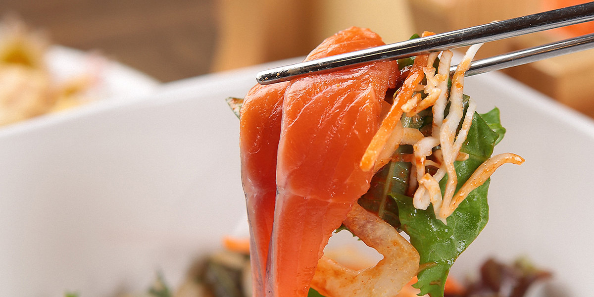 아삭한 채소와 어우러진 새콤달콤한 송어회무침