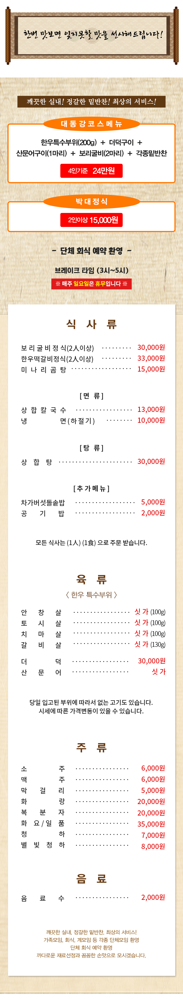 성원에 감사드리며 한결같은 맛과 서비스로 보답하겠습니다.