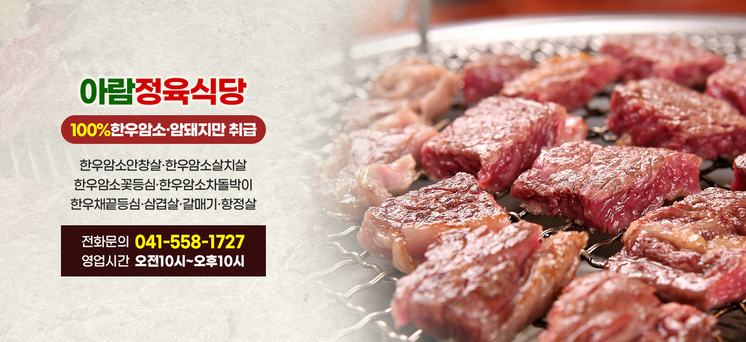 • 아람정육식당 아람정육식당 100%한우암소·암돼지만 취급 100%한우암소·암돼지만 취급