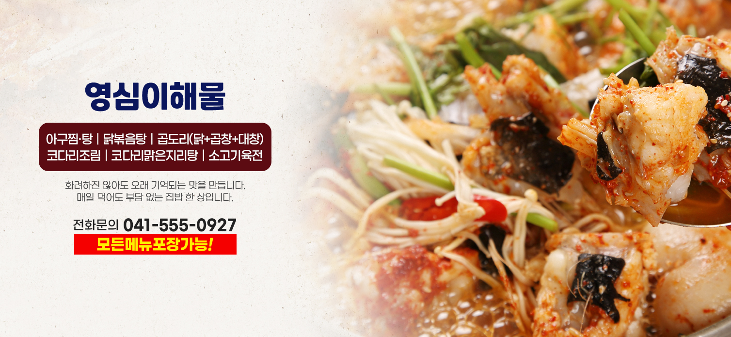 • 영심이해물 영심이해물 집밥 같은 한 끼 집밥 같은 한 끼