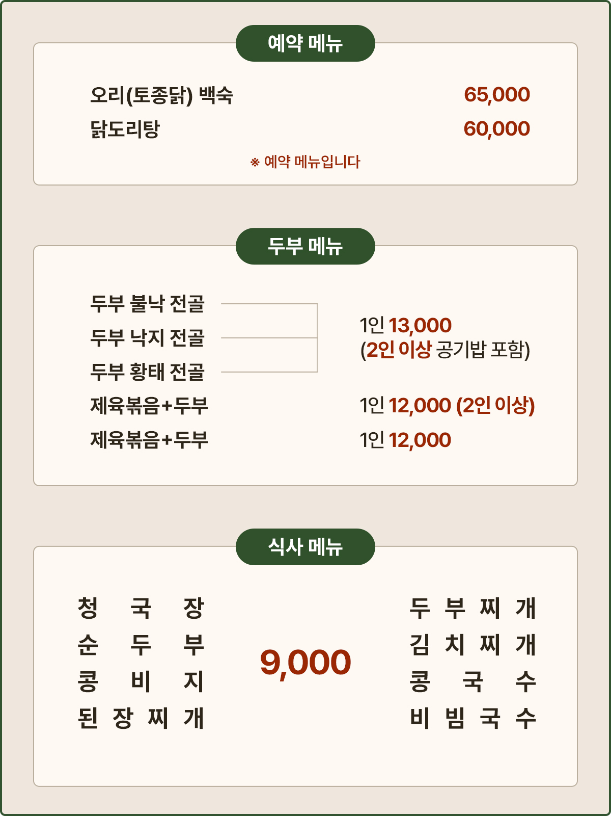 정성으로 준비한 대표 메뉴