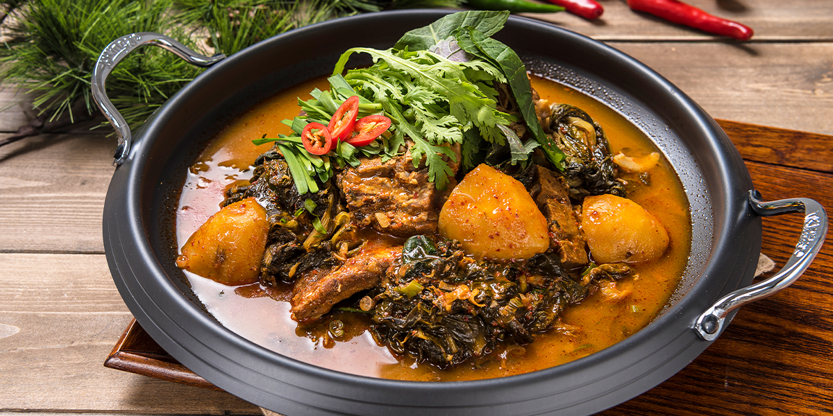 부드러운 등뼈와 구수한 우거지를 듬뿍 넣어 깊고 담백한 국물 맛이 특징인 감자탕 메뉴입니다.