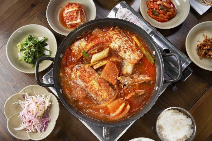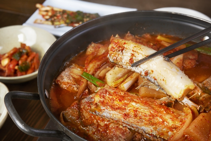두툼한 갈치에 깊고 진한 양념을 더해 끓여낸 밥도둑 대표 메뉴